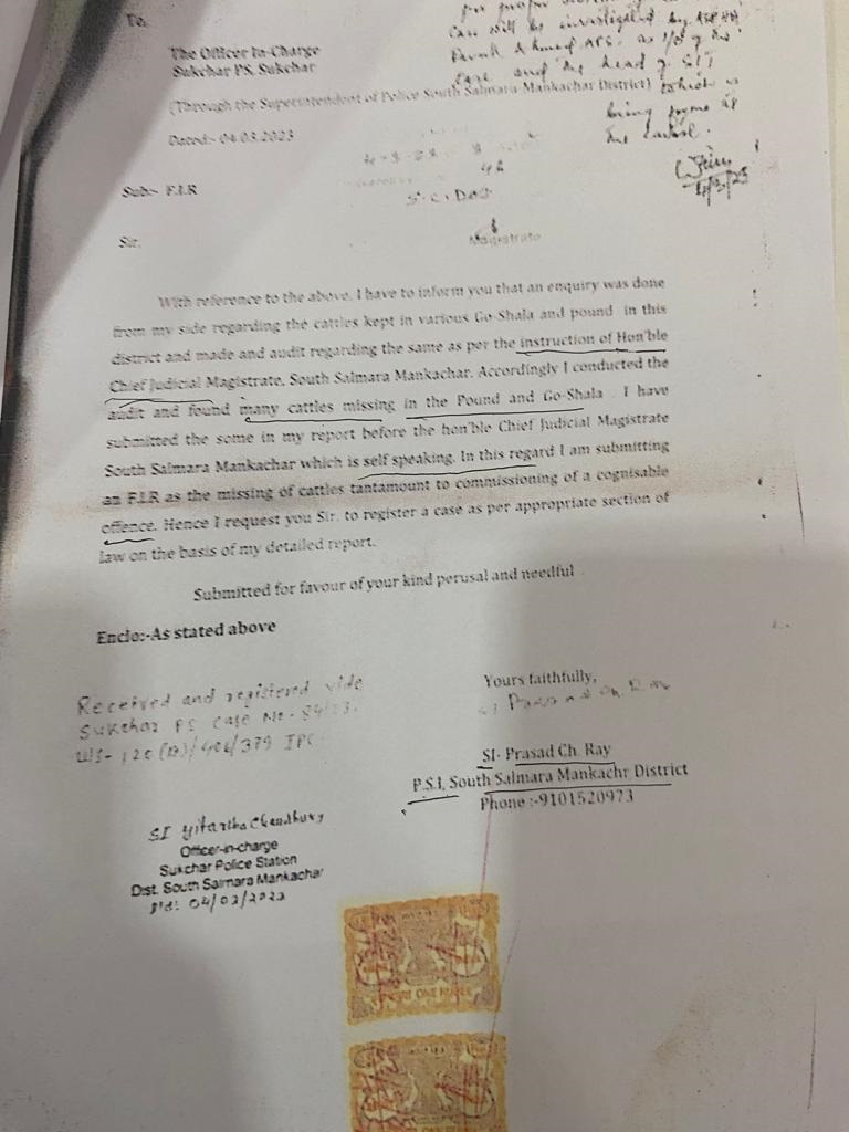 এই এজাহাৰৰ ভিত্তিতেই ৰুজু কৰা হয় ৮ টাকৈ গো শালাৰ বিৰুদ্ধে ভাৰতীয় দণ্ডবিধিৰ ১২০(বি) , ৪০১ আৰু ৩৭৯ ধাৰাৰ অধীনত জামিনবিহীন গোচৰ । কিন্তু ৪ মাৰ্চত গোচৰ ৰুজু হোৱাৰ পাছত আজিলৈ এই গোচৰৰ কোনো তদন্ত আগনাবাঢ়িল৷ যাৰ বাবে দক্ষিণ শালমৰা মানকাচাৰ জিলাৰ আৰক্ষীৰ ভূমিকা অধিক সন্দেহজনক হৈ পৰিছে । প্ৰশ্ন উঠিছে – গোশালাৰ পৰাই চলি আছে নেকি পশুধনৰ চোৰাং বেপাৰ ? এই কথা জানি শুনিও নিমাত হৈ ৰৈছে নেকি দক্ষিণ শালমৰা মানকাচাৰ জিলাৰ আৰক্ষী ? স্বাভাৱিকতে চৰকাৰী অনুজ্ঞাপ্ৰাপ্ত গোশালা আৰু গোধনৰ চোৰাং বেহাৰ মাজৰ সম্পৰ্ক সোমাই পৰিছে সন্দেহৰ আৱৰ্তত।আৰক্ষীৰ নিৰ্লিপ্ত ভূমিকাই এই সন্দেহ আৰু অধিক ঘণীভূত কৰি তুলিছে।
