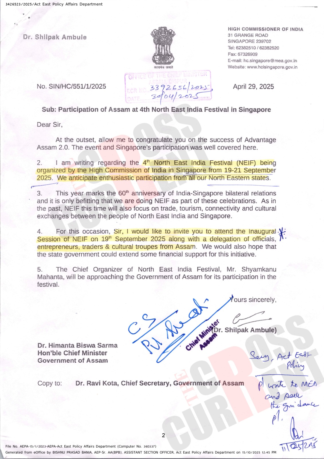 To convey all these details, India’s High Commissioner to Singapore, Dr. Shilpak Ambule, sent a special letter to Chief Minister Dr. Himanta Biswa Sarma. The Chief Minister later forwarded this letter to the Chief Secretary.