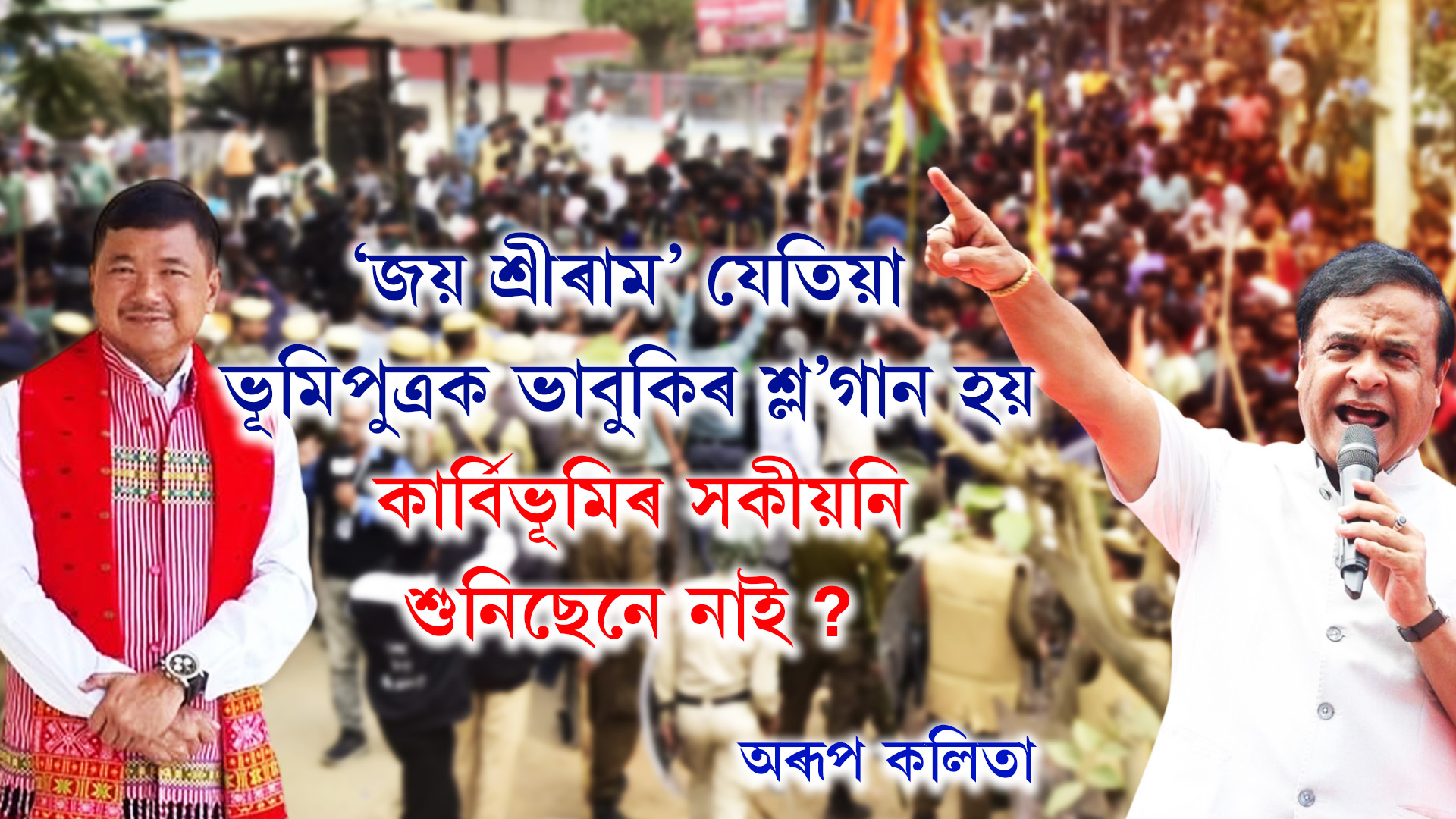 অৰূপ কলিতা: হিংসা বৰ্জনীয়৷ হিংসা সমাধানৰ পথ নহয়৷ এই সত্য মানি লোৱাৰ পাছতো কাৰ্বি আংলঙৰ পৰা যি দৃশ্য অহৰহ ভাঁহি আহিছে, তাক কোনো পৰিস্থিতিতে মানি ল’ব পৰা নাযায়৷ নিজ জন্মভূমিতেই ভূমিপুত্ৰৰ দুৰাৱস্থা দেখি গাৰ নোম শিয়ৰি উঠিছে৷ ভি জি আৰ ভূমিৰ উচ্ছেদক কেন্দ্ৰ কৰি অগ্নিগৰ্ভা হৈ পৰিছে পাহাৰীয়া জিলাখন৷ কিন্তু একেসময়তে ভূমিপুত্ৰসকলক যিদৰে মুকলি ভাবুকি দিয়া হৈছে, তাৰ পাছত আৰু কোনো সন্দেহ নাই যে কাৰ্বি জনজাতিৰ শংকা মুঠেও অমূলক আৰু অযুক্তিকৰ নাছিল৷ বৰং তেওঁলোকে ভবাতকৈ সংকট অধিক গভীৰ আৰু ভয়াৱহ৷ উত্তৰ ভাৰতীয় শক্তিৰ আগ্ৰাসনে এটা জনজাতিক কিদৰে অস্তিত্বৰ সংকটলৈ ঠেলি দিছে, তাৰেই শেহতীয়া উদাহৰণ হৈ পৰিছে খেৰণি৷ য’ত নিজৰ মাটিৰ পৰা জনজাতিসকলক খেদিবলৈ দিয়া হৈছে ‘জয় শ্ৰীৰাম’ শ্ল’গান৷ কাৰ্বি পাহাৰৰ বাৰ্তা অতি স্পষ্ট – আজি কাৰ্বি আংলং, কাইলৈ আন যিকোনো ঠাইত তাৰ পুণৰাবৃত্তি ঘটিবই পাৰে৷